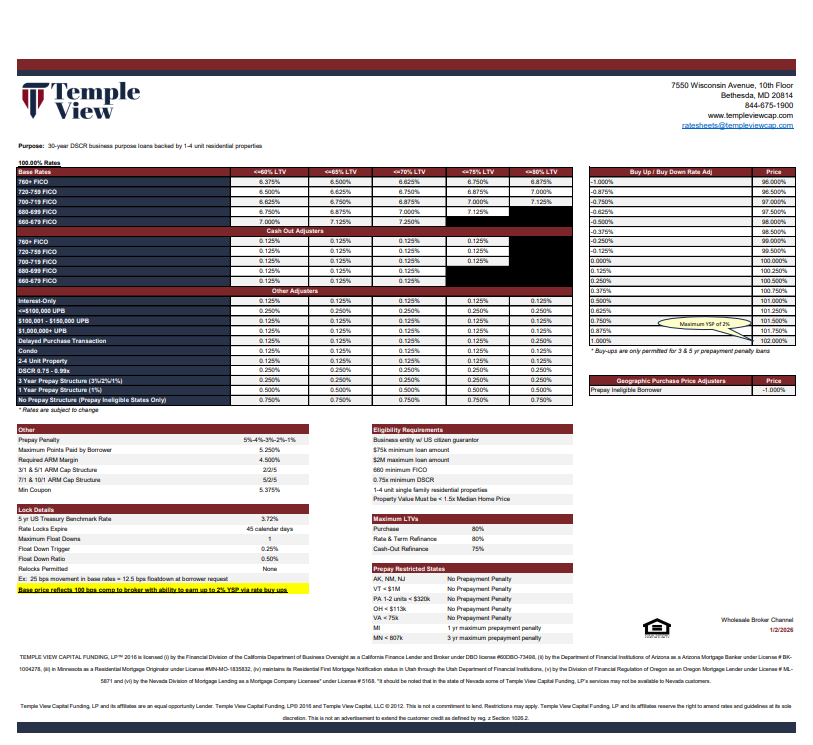 Download a copy of our Fix & Flip Rate Sheet